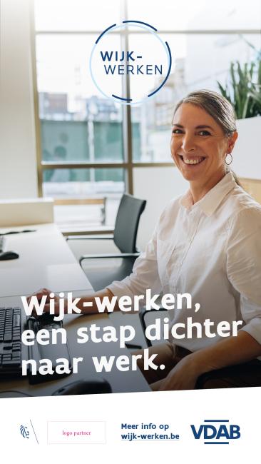 Jij bezorgt ons het logo van je organisatie. VDAB levert je een digitale versie van een roll-upbanner aan mét je eigen logo. Voor het produceren van de banners staat je eigen organisatie in.